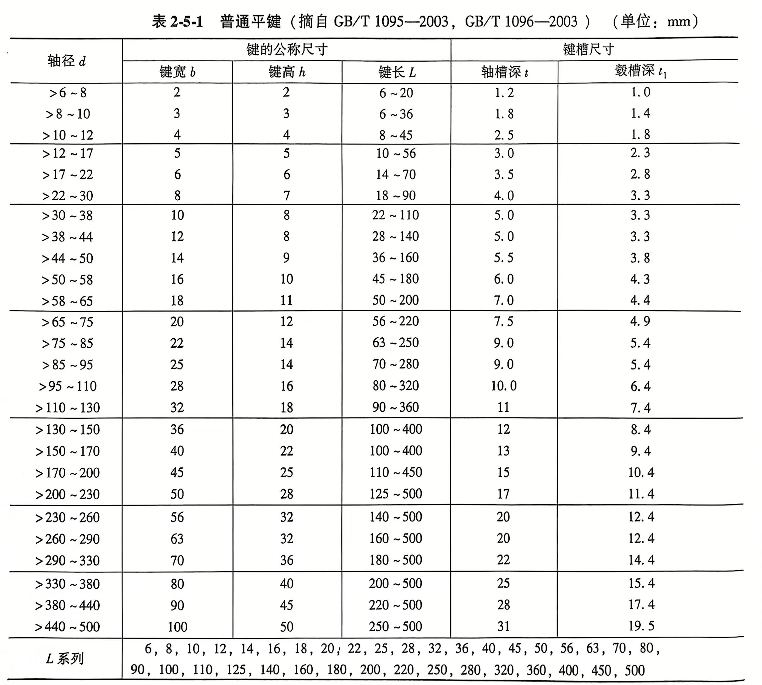 机械设计基础-普通平键标准